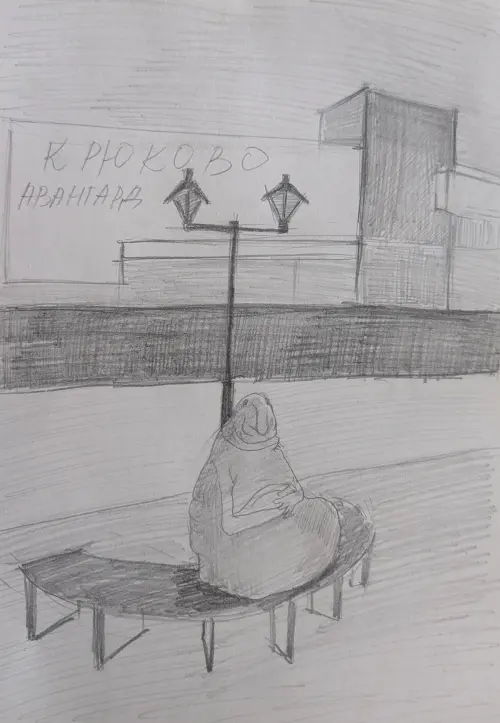 Возле входа на обновлённый Крюковский рынок на скамье для покупателей посадили статую персонажа из соцсетей — Ждуна. Горожане любят делать забавные фото.