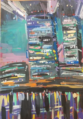 На работе изображены ввсотки комплеема «Моска-сити». При ночном освещениии они особеннол красивы. Рядом сьанция метро Деловой центр. Мы любим здесь гулять по набережной Тараса Шевченко. Вокруг много деревьев и река. Мног новых строящихся зданий. Работает строительная техника. Рабочие ходят на обед в магазины. По реке ходят корабли, разные большие и маленькие