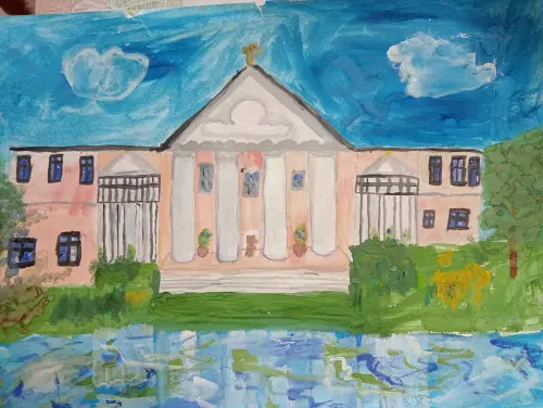 На рисунке, у меня изображено Главный Вход ВДНХ. Мне очень нравится гулять с семье в этом парке. В парке есть много разных павильонов и зона отдыха мне очень это нравится.