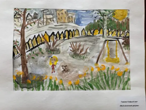 Около моего дома есть двор. обычно там я гуляю с друзьями и провожу свободное время. мой двор очень большой и красивый. вокруг него катаются на велосипедах и самокатах.