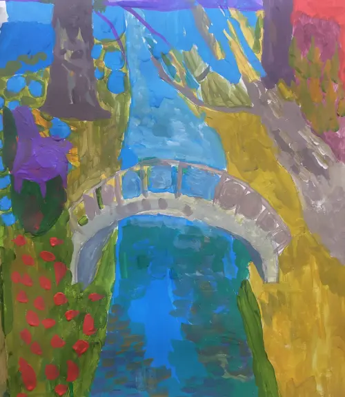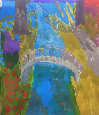Любимый мостик в усадьбе Кузьминки (Горбатый мост). Очень красив во все времена года. Но больше всего автору нравится мостик осенью. Сочетание холодной синей воды и теплой желтой листвы. Формат работы А2, техника – гуашь.