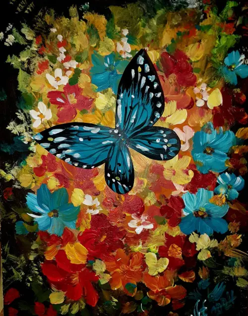 Картина «Бабочки на клумбе Арбата» навеяна летом. Солнышко, цветы, бабочки, яркие краски — всё это вдохновляет и радует! Лето — это здорово! Красота в глазах смотрящего.
