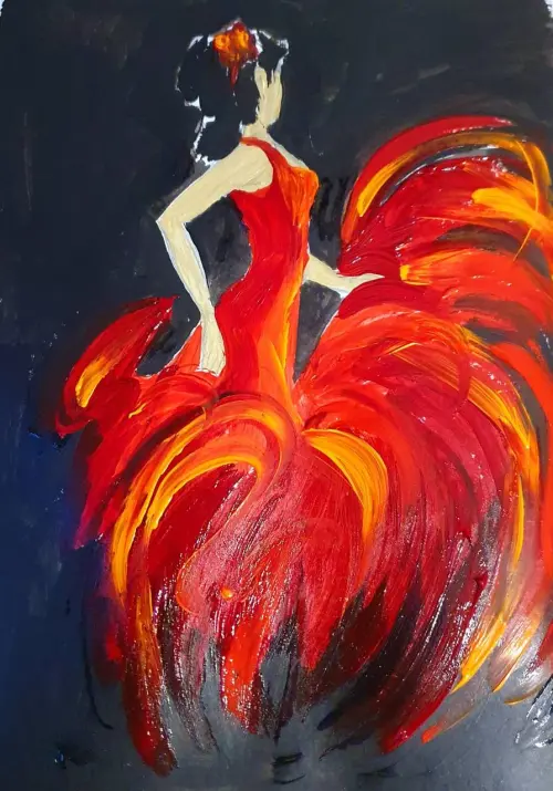 Как-то раз моя мама надела красивое красное платье на прогулку по Старому Арбату. Она так выделялась среди всех остальных людей, что этот образ запомнился, и мне захотелось её нарисовать.