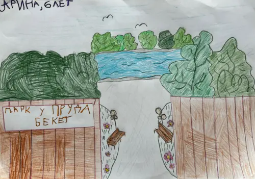 Это мой любимый парк в нашем районе. Мы часто там гуляем с семьей, катаемся на самокатах и велосипедах Парк у пруда Бекет — мое самое любимое место в нашем районе. Мы часто там гуляем с семьей, катаемся на самокатах и велосипедах.