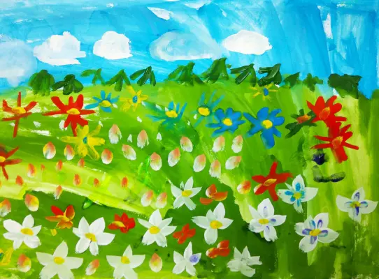 Цветочная поляна около дома. Красивый и живописный уголок в нашем дворе. Мы с мамой очень часто останавливаемся около этих пестрых и ярких цветочков, чтобы сфотографировать, Они мне так нравятся, что я решила их нарисовать.