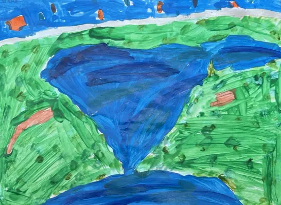 Я нарисовала Святое озеро нашего района где я живу. Я часто с родителями хожу туда гулять. Мне очень нравится это озеро. Она очень красивое и красочное и историческое.
