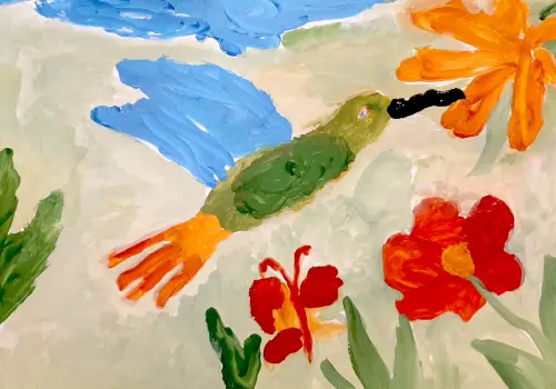 Люблю гулять и мечтать. Хочу, чтобы в моем районе было красиво, много цветов, животных и птиц. В моём районе на Мазиловском пруду поют птицы и я решила изобразить одну из таких чудесных птичек.
