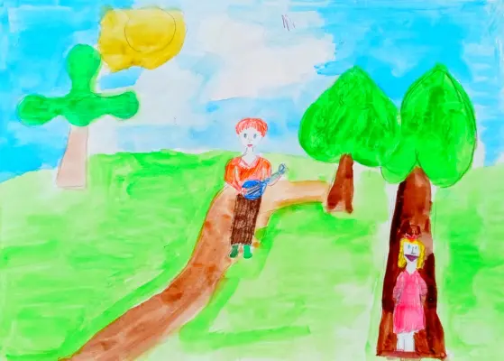 Мы с мамой очень любим гулять по нашему парку в Строгино и играть в прятки. Поэтому я решила эту прогулку нарисовать, чтобы зимой вспоминать о том, как нам было весело и интересно бродить под теплым солнышком.