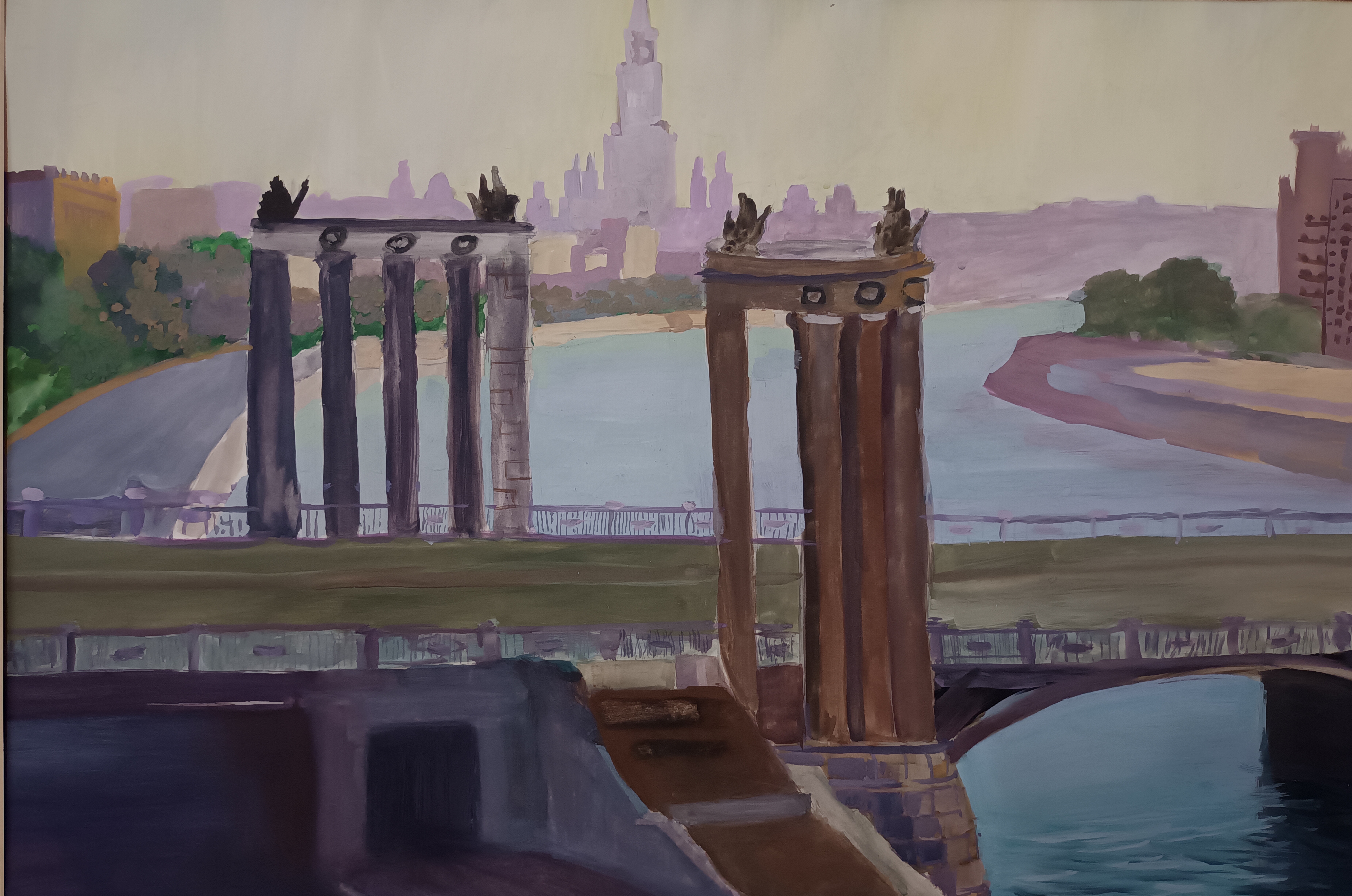Меня зовут Егор Котов мне 17 лет. С детства я любил рисовать и поэтому в 10 лет пошел в школу рисования и вот одна из картин нарисованная мной. Это набережная Москвы.