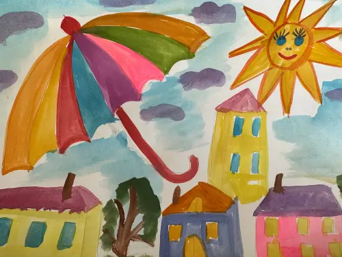 Картина о моем любимом дворе и моей любимой площадке, где я играю со своими друзьями. Летом наша площадка становится оживленнее, все находят себе занятие по душе. Я люблю кататься на горке и качелях.