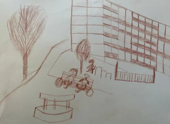 Это мой любимый район, в котором я родилась и подрастаю, я люблю гулять тут с друзьями и родителями, ходить на мою любимую детскую площадку и играть на футбольном поле.