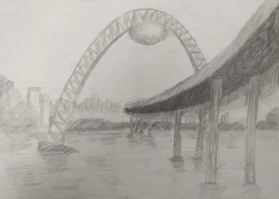 Высота моста — более 100 метров. С него открывается обзор на Крылатские холмы и Серебряный бор.