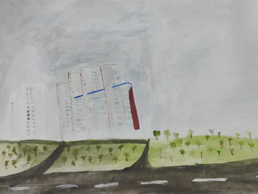 На рисунке изображен дом «Титаник» с улицы Хачатуряна с небольшой импровизацией. .
