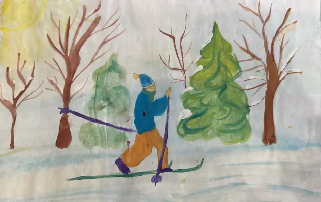На рисунке «Зимняя прогулка в Екатерининском парке» изображен прекрасный заснеженный парк, который напоминает настоящую зимнюю сказку. Деревья покрыты белым пушистым снегом, а аллеи усыпаны свежими снежными хлопьями. Люди, нарядившиеся в теплые зимние пальто и шапки, прогуливаются по парку, катаются на лыжах, оставляя следы на снегу. Кажется, что они наслаждаются чистотой и тишиной зимнего утра, наслаждаются красотой природы и моментами спокойствия. Воздух наполнен свежим морозным ароматом, а небо над парком сияет ясным синим цветом.