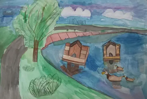 Я живу в самом зелёном районе Москвы. Здесь несколько красивых парков рядом с домом. На своей картине я изобразила один из моих любимых парков- это «Торфянка». Там много деревьев и пруд, на котором любят плавать уточки. Там очень хорошо гулять и любоваться природой. Я живу в самом зелёном районе Москвы. Здесь несколько красивых парков рядом с домом. На своей картине я изобразила один из моих любимых парков- это «Торфянка». Там много деревьев и пруд, на котором любят плавать уточки. Там очень хорошо гулять и любоваться природой.