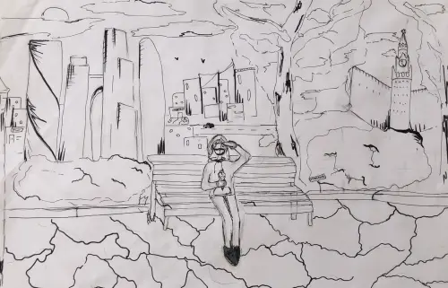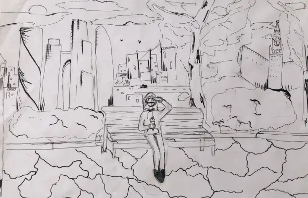 Девочка сидит на скамейке в центре Москвы и думает над тем, какая достопримечательность города Москвы ей нравится больше: Красная площадь или Москва Сити? Девочка сидит на скамейке в центре Москвы и думает над тем, какая достопримечательность города Москвы ей нравится больше: Красная площадь или Москва Сити?