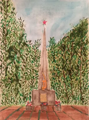 Данный рисунок был нарисован в честь дня памяти и скорби. Задумка ребенку пришла после митинга в день памяти и скорби. Мемориал в парке Вагоноремонт.