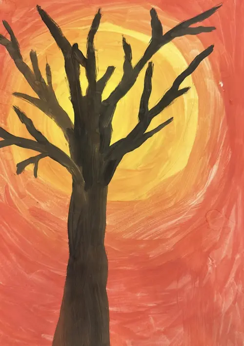 «Закат в Мещанском районе» — это произведение, представляющее красочный закат над городским пейзажем. Главная особенность этого рисунка — яркость и насыщенность цветов, которые отражают уникальную атмосферу момента между днём и ночью.