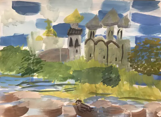 На Пасху мы с родителями ездили в Храм Воскресения Христова. Мне здесь очень понравилось, так было красиво, особенно в солнечный день, когда купола блестят на солнышке.
