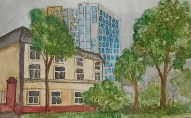 Этот дом находится на Изумрудной 63/1 и построен в 1955 году. Но по моему ощущению ему лет 200. Меня завораживает его архитектура и проходя мимо него, я мысленно придумываю истории про его жильцов. И хотя, я не знакома с ними, желаю каждому счастья и процветания.