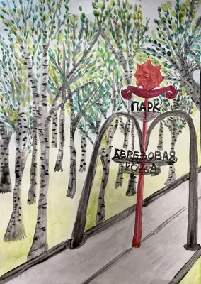 Работа выполнена акварелью. Я нарисовал мой любимый парк «Березовая роща». Теперь парк так преобразился, стал ухоженным, с красивыми кустами, цветами и деревьями.
