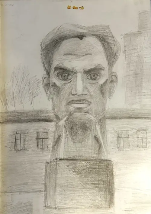 Моя работа посвящена памятнику Игорю Васильевичу Курчатову, «отцу» атомной бомбы СССР. Это один из значимых памятников в моём районе и для меня, так как мои родные работали на территории памятника, а именно в институте имени Курчатова. Это место наполнено ностальгией и радостными моментами моего раннего детства, поэтому я проиллюстрировала эту излюбленную локацию на моём рисунке.