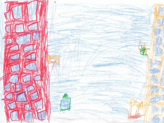 Я нарисовал свой район. Я живу в городе Московском, у нас замечательный двор с детской площадкой и футбольным полем, где мы играем с друзьями в футбол. Еще у нас есть парк «Филатов луг», там очень много детских площадок и зоны отдыха.