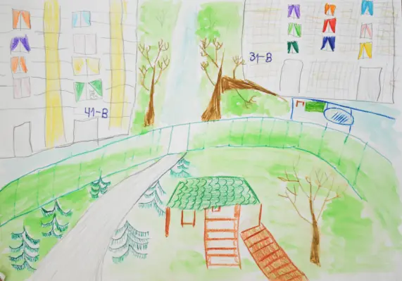 Мой детский сад очень уютный, расположен в жилом районе, и окружен зеленью. Мне очень нравится там играть и заниматься. Я люблю свой район и свой город.