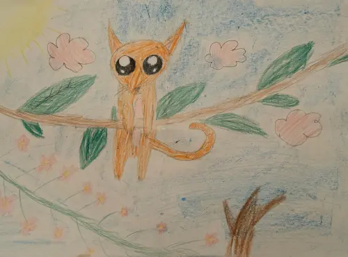 Я встретила во дворе маленькую рыжую кошечку. У неё были огромные глаза. Мы подружились, и она частенько меня встречает во дворе, когда я иду гулять. Жаль, что я не могу взять ее домой.