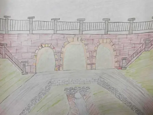 Рядом с моим местом проживания расположена потрясающая усадьба «Старо-Никольское», в котором я часто провожу время с семьей. На территории усадьбы расположен прекрасный мост, под которым течет красивейший водопад. Именно это место я считаю самым красивым и вдохновляющим. Поэтому изобразила его на своем рисунке.