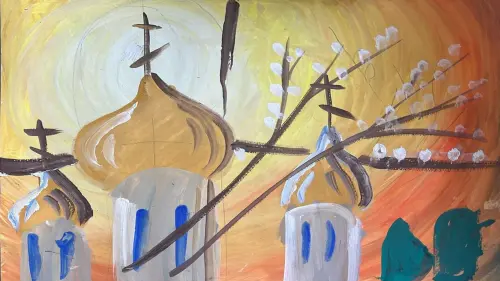В своей работе я изобразил красивый Храм Христа Спасителя, который расположен в Москве. Я посещал его на школьной экскурсии, и это посещение оставило в моей душе неизгладимые потрясающие впечатления.