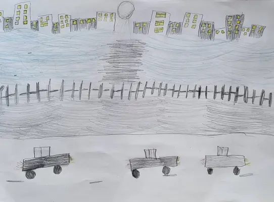 На рисунке изображено, как выглядел район Нагатино-Садовники много лет назад.