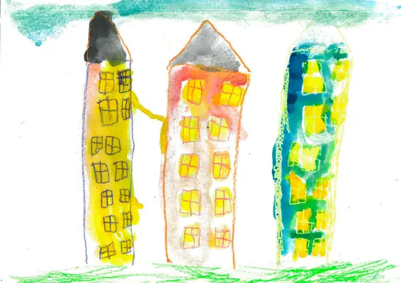 Мне очень нравится, какие у нас красивые домики, все разные и иногда кажется что я живу в мультике, потому что все вокруг такое красочное, когда я вырасту, то построю рядом с домами своих друзей маленькие мостики, чтобы можно было ходить в гости и любоваться с высоты видом остальных домиков
