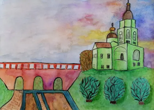 Я проживаю в поселении Первомайское. Хочу сказать, что наш край напитан святой энергией. На территории поселения расположено множество священных Храмов, которые наполняют местность силой. Я часто посещаю святые места в нашем поселении, но Церковь сошествия святого Духа особенна для меня. Именно ее я изобразил на своем рисунке.