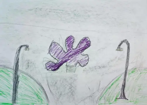 На картине изображен Измайловский парк с его асфальтированными дорожками, клумбами и фонарями, освещающими путь для любителей прогуляться.