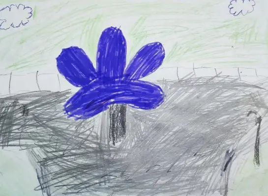 На картине изображен Сиреневый бульвар с клумбами и с кустами. Вокруг все в зелени, а по небу плывут облака.