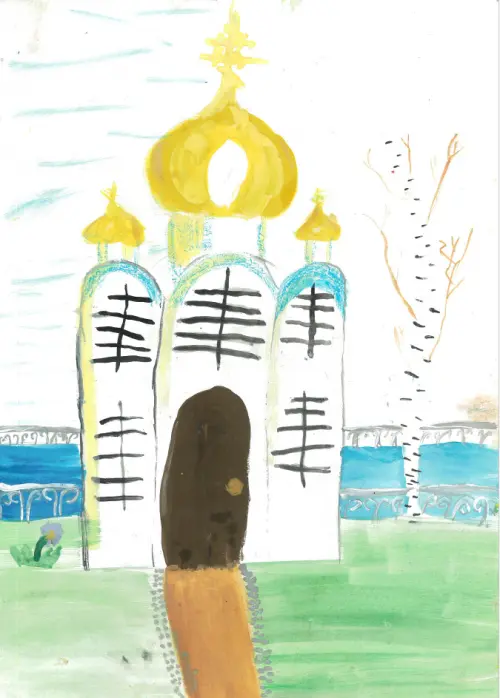 Мне очень нравится наша церковь, ее даже видно из нашего окна немного, она очень красивая и там красивые поют песни, иногда мы с бабушкой ходим туда рано утром и слушаем как дядя священник поет по книжке. Еще бабушка водила меня туда чтобы мне дали святой хлебушек, мне понравилось