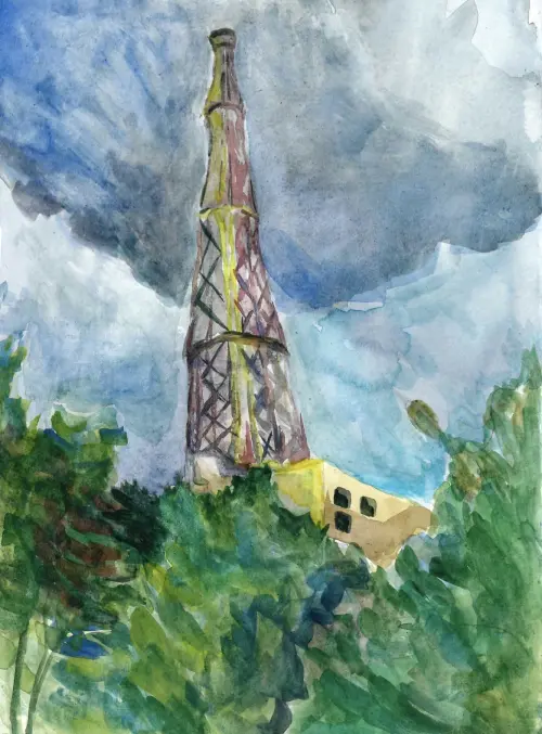 Необычная конструкция, можно сказать символ нашего района. Мне запомнился печальный вид Шуховской башни в грозовых облаках, поэтому мне захотелось нарисовать именно этот вид.Необычная конструкция, можно сказать символ нашего района. Мне запомнился печальный вид Шуховской башни в грозовых облаках, поэтому мне захотелось нарисовать именно этот вид.Необычная конструкция, можно сказать символ нашего района. Мне запомнился печальный вид Шуховской башни в грозовых облаках, поэтому мне захотелось нарисовать именно этот вид.