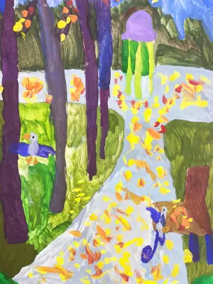 Оле очень нравятся краски осени, поэтому она нарисовала именно осенний парк, по которому она любит гулять в любое время года и наблюдать за разнообразием птицОле очень нравятся краски осени, поэтому она нарисовала именно осенний парк, по которому она любит гулять в любое время года и наблюдать за разнообразием птиц