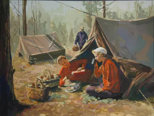 Мы с ребятами часто ходим в походы и так как мы еще молоды родители не отпускают нас далеко. Хорошо что у нас в районе Орехово-Борисово Южное есть яблоневый сад. Мы берем с собой палатки и прекрасно проводим время. В своей работе я хотел показать как это происходит.
