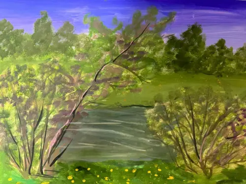 Картина выполнена в зеленовато-желтых тонах. Небо довольно светлое и прозрачное, но уже чувствуется приближение непогоды и холодов.
