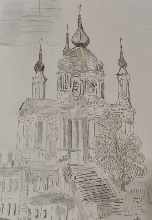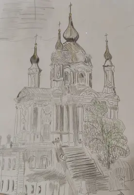 Строгино район зелени, Москва-река, и храмы. Один из них это Храм Новомучеников и Исповедников Российских. Белокаменная, с красивыми купалами, а перезвон какой. Мне нравится рисовать карандашом, он больше предает истинную красоту наших Храмов.