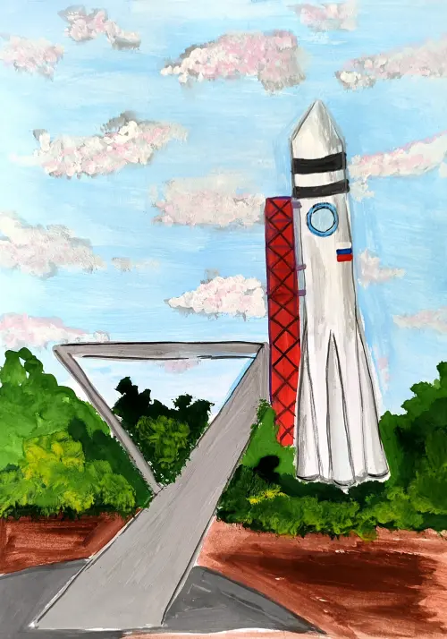 Интересный объект на территории ВДНХ. Люблю там гулять. На этой ракете полетел в космос Юрий Гагарин. Это макет Ракеты, она такая величественная и легендарная, вызвала мой интерес, чтобы её нарисовать.