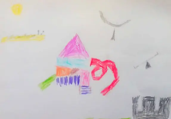 Я нарисовала свою любимую горочку. Я часто прихожу кататься на своей горочке. Она стоит на детской площадке недалеко от моего дома. Горочка большая и красочная.