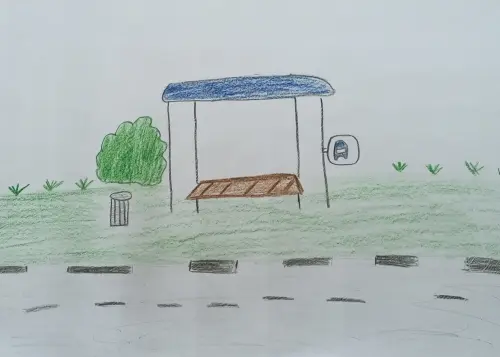 После экскурсии все поехали обратно, мы очень устали и долго ждали автобус на остановке.