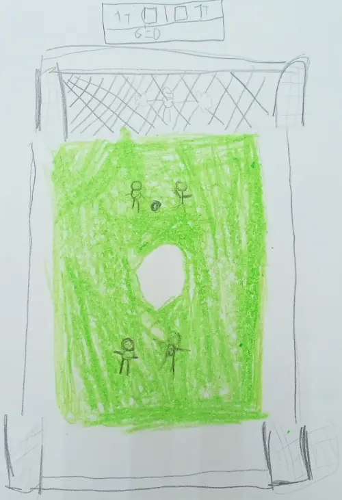 Мне нравится наша футбольная коробка недалеко от дома.