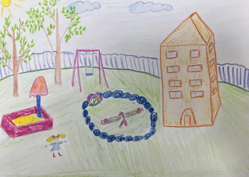 У нас на детской площадке растут цветы, мы все за ними ухаживаем. Детская площадка у нас тоже красивая и мы все вместе на ней гуляем. Катаемся на качелях.У нас на детской площадке растут цветы, мы все за ними ухаживаем. Детская площадка у нас тоже красивая и мы все вместе на ней гуляем. Катаемся на качелях.