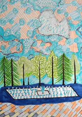 В городе Московский есть замечательный фонтан. Он располагается на площади около Дворца культуры. Летом фонтан работает каждый день. Я очень люблю гулять около него и даже внутри. Да-да, именно внутри. Ведь это замечательный фонтан — у него то пропадают, то появляются струи воды, среди которых можно бегать и шагать. Получается, что фонтан как будто играет со мной, а я играю с фонтаном. Мои друзья тоже любят играть со его струями. В жаркий день в нем можно охладиться, как в озере. Люблю мой город!