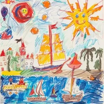 Я мечтаю оказаться в сказке, поэтому изобразил свой двор похожим на волшебный остров, над которым всегда светит солнце, на котором растут пальмы и другие экзотические деревья.