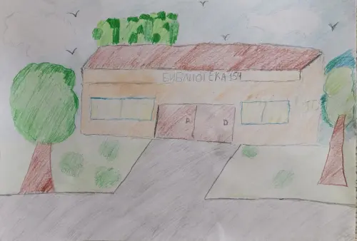 У меня во дворе располагается моя любимая библиотека, я решила ее нарисовать, так как я гуляю рядом с ней. А еще мы с мамой часто ходим читать книги, которые я люблю, и еще на разные занятия.